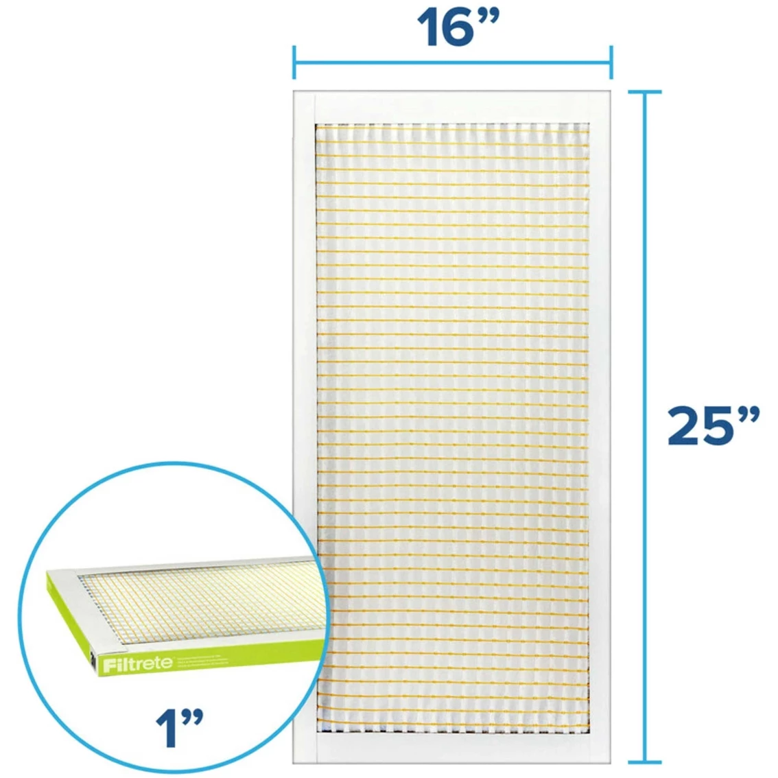 Filtrete Pollen Air Filter, 600 MPR, 16 x 25 x 1 in., one pk. three-month pleated 1 in. home air filters for your furnace, air conditioner or HVAC system. Designed with the exclusive Filtrete brand 3-in-1 technology from 3M to trap unwanted air particles while letting cleaner air flow through. Attracts and captures particles such as lint, pollen, dust, pet dander, smoke and smog. 600 MPR has a rating of MERV 7. The higher the MPR, the more microparticles–such as pollen, smoke, bacteria and viruses–your filter will capture from the air passing through it. For optimal performance of your heating and cooling system or HVAC system, change your home air filter at least every 90 days for 1 in. filters, and at least every 12 months for 4 in. and 5 in. filters. A dirty filter will slow down air flow and make the system work harder to keep you warm or cool–wasting energy.