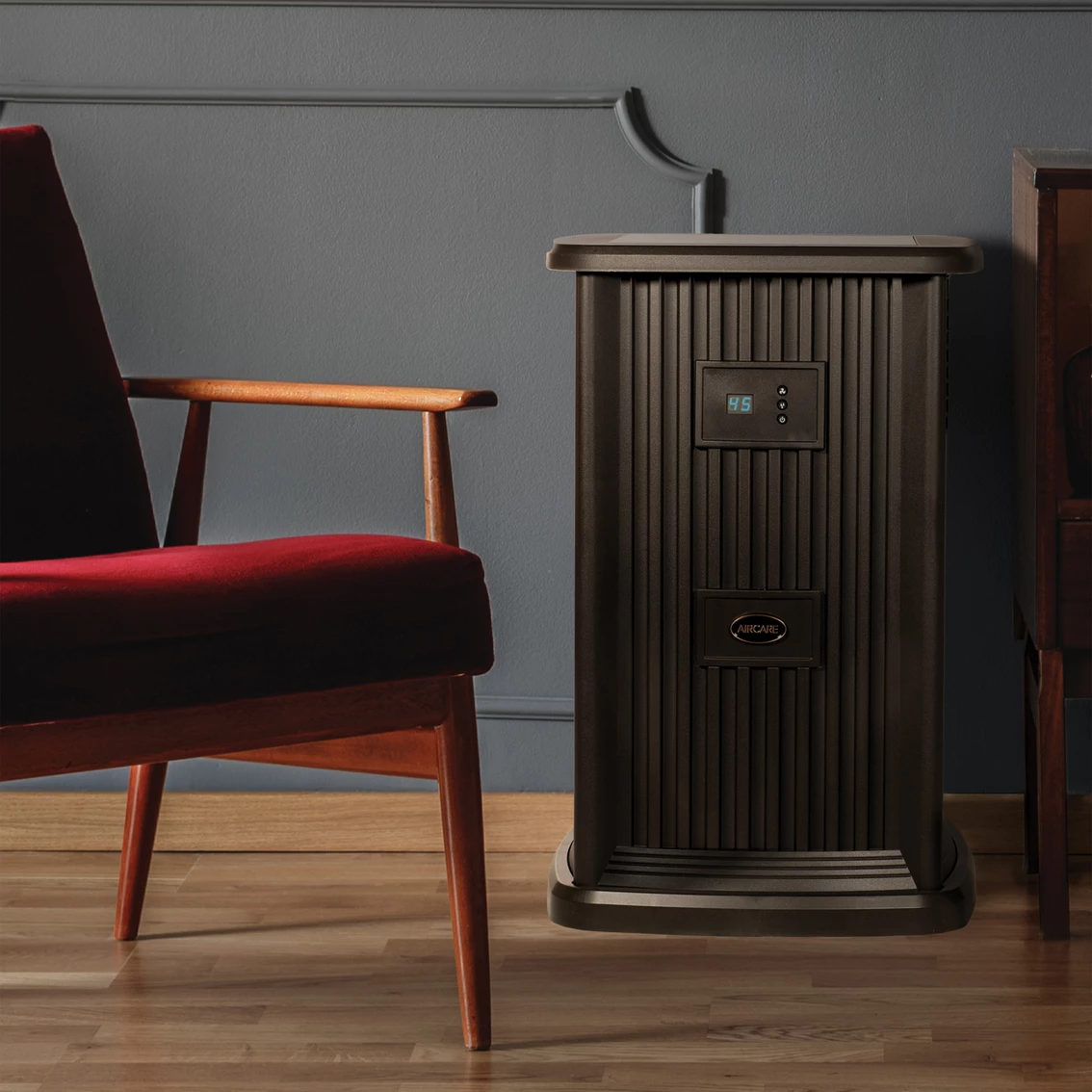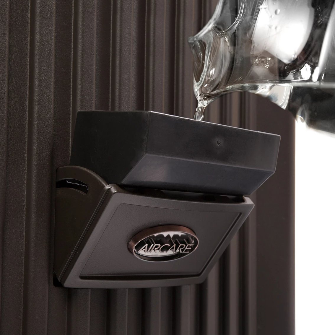 The Aircare Evaporative Humidifier Pedestal EP9800 has a 3.5-gal. water capacity. Treats up to 2400 square feet. Runs up to 60 hours per filling. Aircare humidifiers are made to look great in any room, in any home. But they’re more than just good looks. Aircare humidifiers really care for your air. Whether you need a cool mist evaporative humidifier for your whole house, a warm mist ultrasonic humidifier for your baby’s nursery, or a steam humidifier to help soothe flu symptoms, Aircare has a humidifier with the right mist to keep you comfortable. Model: EP9 800.