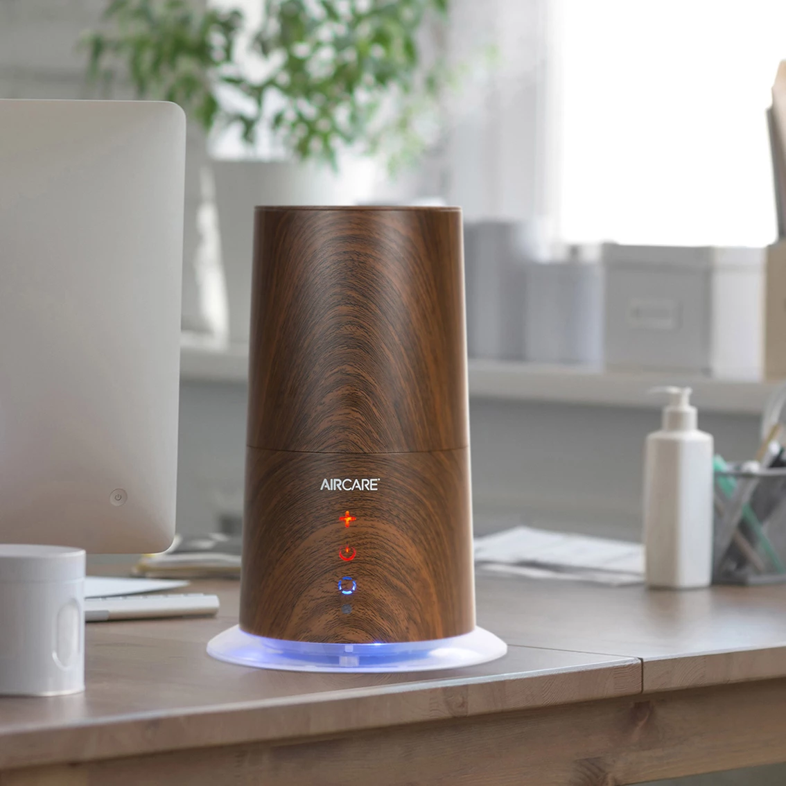 The Aircare Mesa Warm/Cool Mist Ultrasonic Humidifier covers 750 sq. ft. Finished in Walnut with Essential Oil Diffuser and LED Nightlight. Aircare humidifiers are made to look great in any room, in any home. But they’re more than just good looks. Aircare humidifiers really care for your air. Whether you need a cool mist evaporative humidifier for your whole house, a warm mist ultrasonic humidifier for your baby’s nursery, or a steam humidifier to help soothe flu symptoms, Aircare has a humidifier with the right mist to keep you comfortable. Model: MU320DWAL.