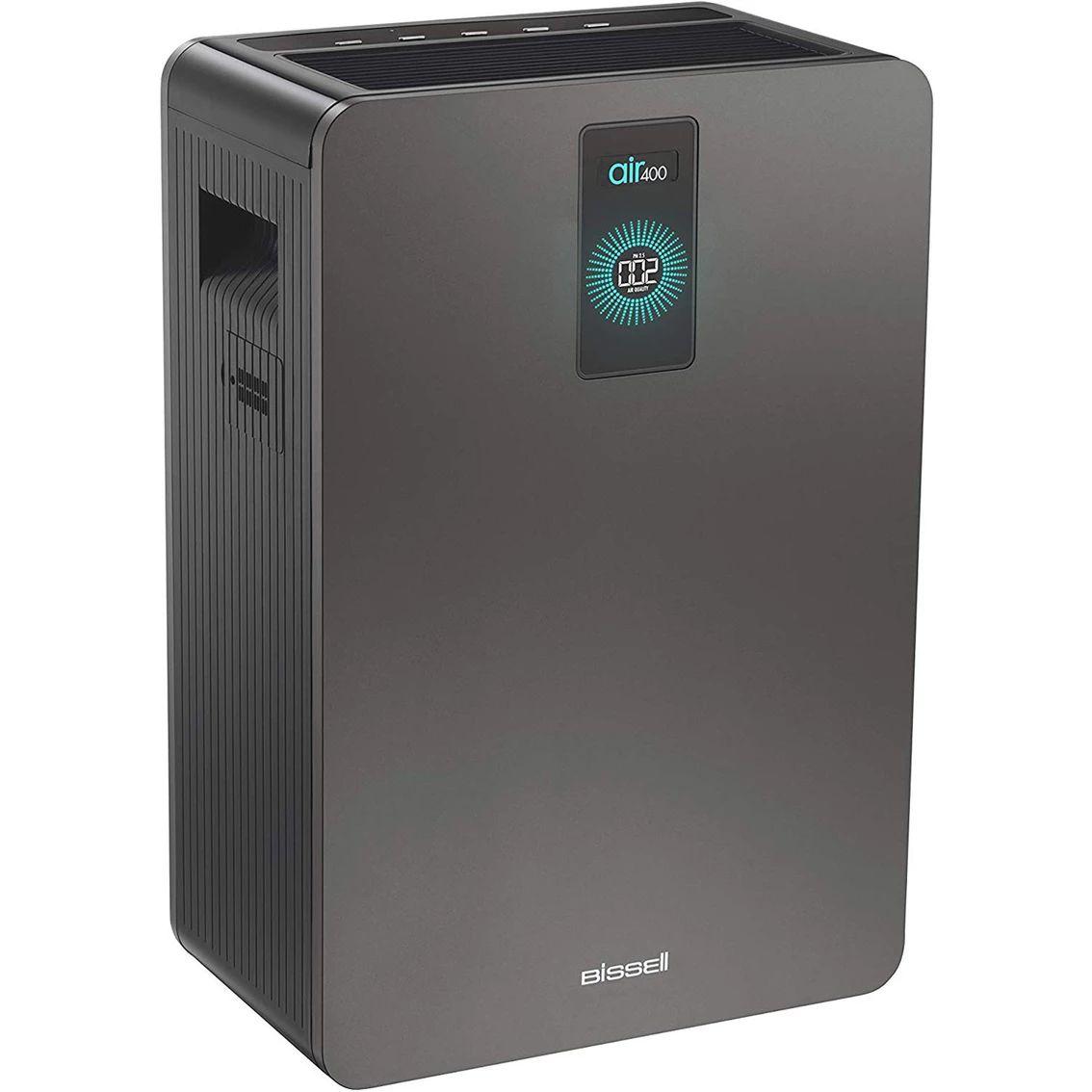 Clean air Made easy. Introducing the Bissell Air400 Air Purifier. A reliable, holistic approach to indoor air care. Designed for performance from the inside out. Equipped with 3 stages of filtration to capture airborne particles and odors, circulate system for set It and forget it convenience, And an air quality display that numerically identifies your homes air quality in real-time. It’s clean air you can count on! It also has a large fan and digital 20, 000 hour DC motor that together exchange the air in a 400 sq. ft. Room three times per hour when on Max mode. Life happens – kids, pets, odors, allergens, dust, and beyond. Let us worry about cleaning the unseen while you rest assured that your family is breathing easy, clean air. Model: 24791.