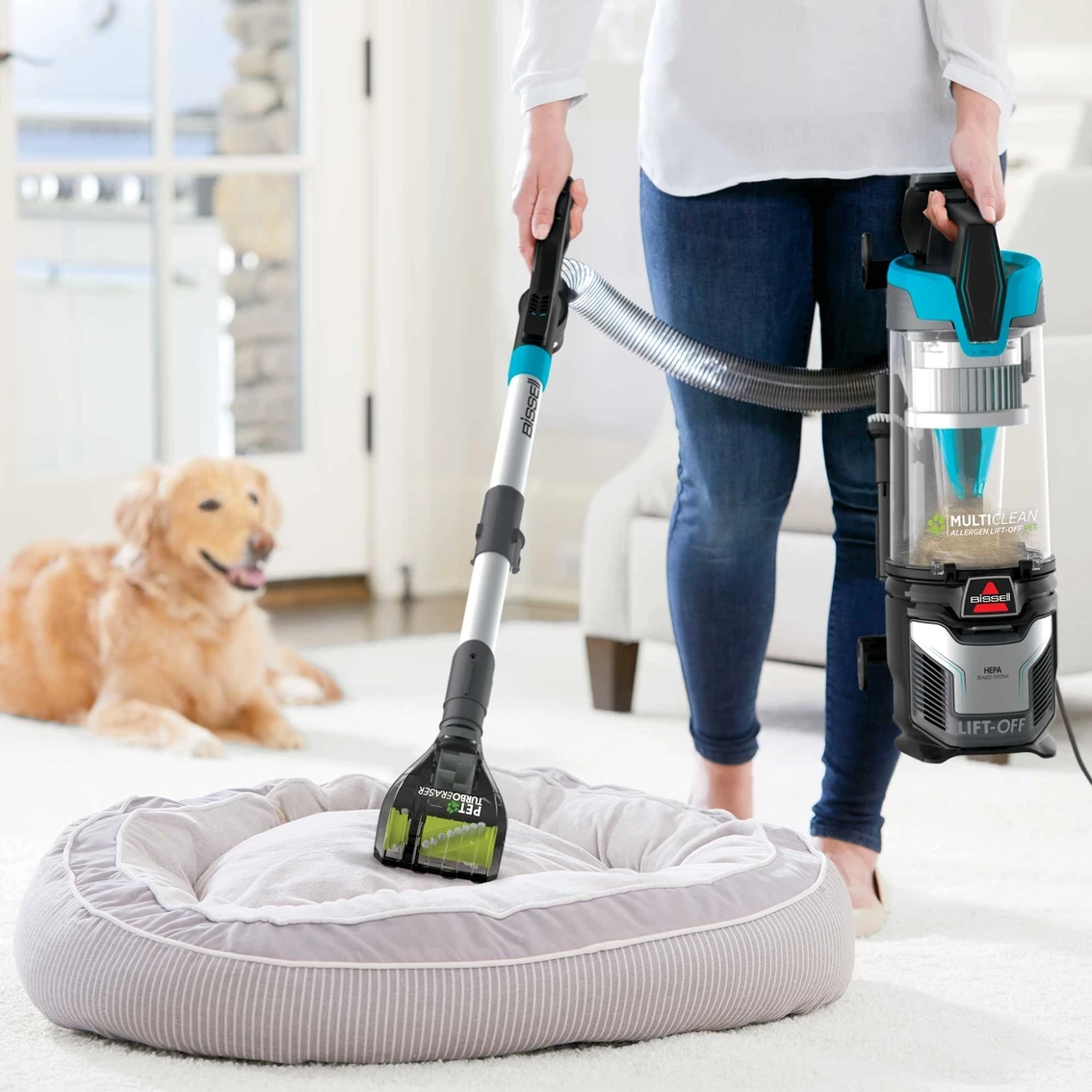 Pets are a part of our families, but having pets also means chasing after the pet hair, dirt, dander, allergens, and odors they leave behind. The cleanup is now easier than ever with the Bissell MultiClean Allergen Pet Lift-Off. Model: 2852.