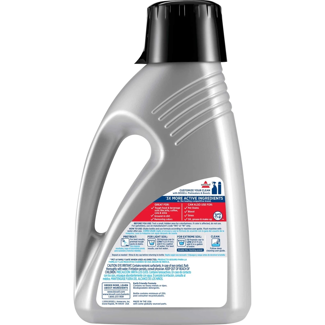 Bissell Pro Oxy Deep Clean Formula works in all Bissell upright carpet cleaners. Removes deep down stains, dirt and odors on upholstery, carpet and area rugs. It works to remove tough stains left by coffee, juice, red wine, and more. This formula is also safe to use around kids and pets, when used as directed.