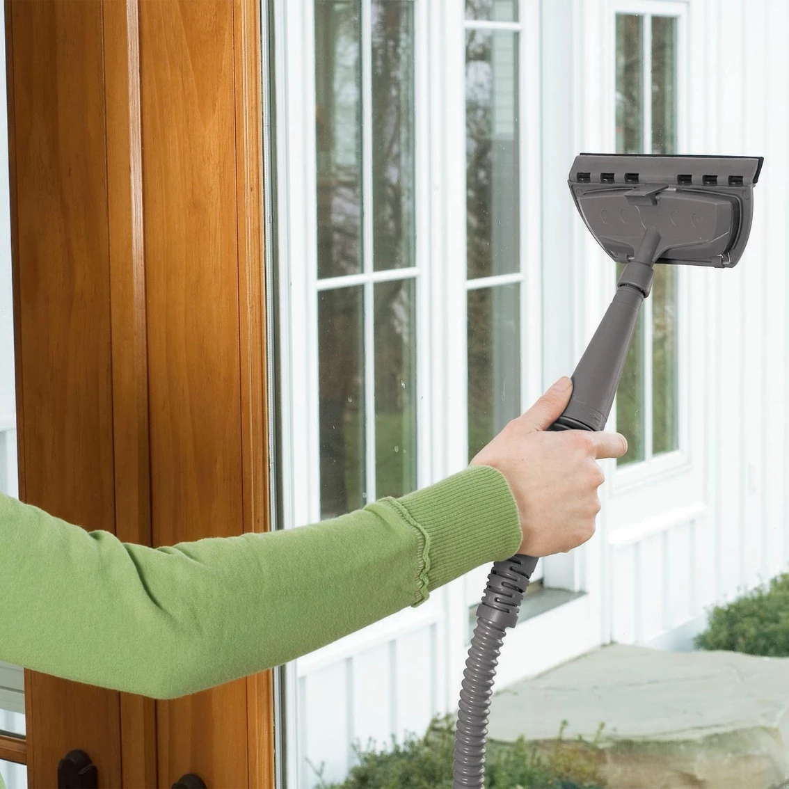 The Bissell Steam Shot Steam Cleaner provides 100% chemical free cleaning right in the palm of your hand. Perfect for those hard to reach places, this Bissell homecare steamer has 1000W of power, easy-to-press steam on demand trigger and a five ounce tank capacity. The Bissell steam cleaner can also be used on counter tops, sinks and other hard surfaces. The Bissell home care steamer comes equipped with handy tools like an angle concentrator, detail brush, cleaning cloth and a brass bristle detail brush so you won’t miss a spot. The Bissell Steam Shot Steamer has everything you need to safely and effectively clean your home. Model: 39N71.