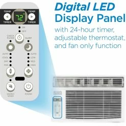 This Black + Decker 10,000 BTU small window air conditioner unit will keep your home cool and comfortable even in the dog days of summer. No matter the weather outside, this superior window unit AC runs at four levels: auto, low, medium and high to ensure optimal indoor relief. This luxury air conditioner for window comes with a full function remote control, digital display and adjustable thermostat control. You control your roomโs temperature in the range of 62-86 degrees Fahrenheit. ECO and sleep mode included.