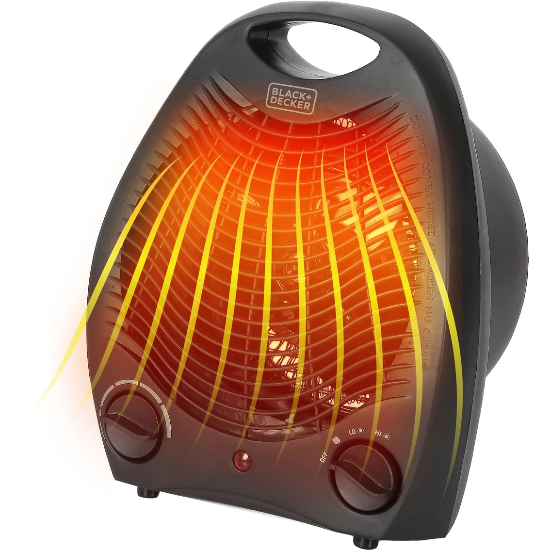 When it comes to electric heaters for indoor use and space heaters for indoor use, this BLACK+DECKER desktop heater with fan is your top pick for efficient and safe warmth. This small space heater (8.4″ x 5.2″ x 10″) fits snugly on a small office desk or room desk and comes with 3 Heat Settings: Fan, Low (750 Watts), & High Heat (1500 Watts).