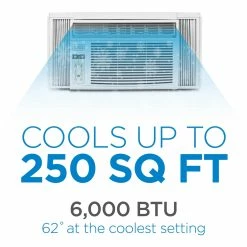 This Black + Decker 6,000 BTU small window air conditioner unit will keep your home cool and comfortable even in the dog days of summer. No matter the weather outside, this superior window unit AC runs at four levels — auto, low, medium and high to ensure optimal indoor relief. This luxury air conditioner for window comes with a full function remote control, digital display and adjustable thermostat control. You control your room’s temperature in the range of 62 degrees F – 86 degrees F. ECO and sleep mode included.