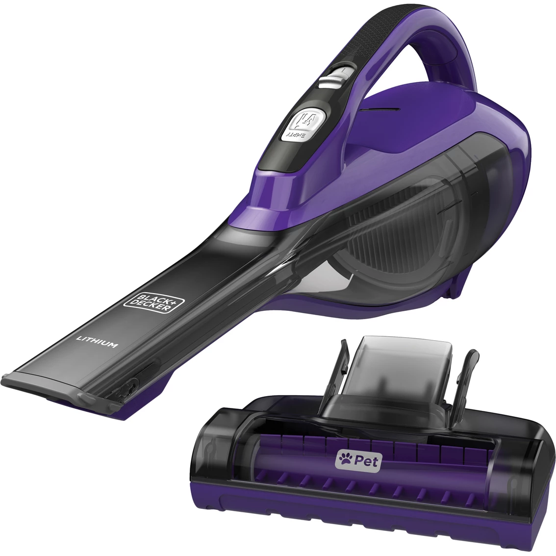 From the #1 Brand in hand vacuums, this Dustbuster Hand Pet Vacuum from Black + Decker comes with a motorized pet head that helps you pick up pet hair without it getting tangled in the brush. Lithium technology gives it powerful suction to help pick up even bigger messes like food and litter. Plus, its on-board crevice tool and push in brush give you a deeper level of clean. And, after cleaning, dump the dirt and hair without touching it with the no-mess, easy-empty dustbin. Model: HLVA325JP07.