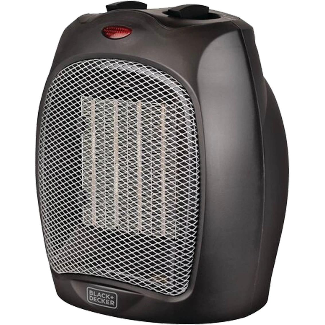 When it comes to electric heaters for indoor use, this Black + Decker Portable Three Settings Ceramic Electric Heater is your top choice with its ease of use and functionality. Compact and light weight, you can take this portable heater with you wherever you want. This can easily become an office heater or heater for bedroom. Choose your temperature from three optimal heat settings — Fan, Low (900 Watts) and High (1500 Watts). Features safety overheat protection and even a tip-over auto shutoff function. Enjoy an adjustable manual thermostat control on this small electric fan. With a power cord length of 6-ft. and easy-to-read power on indicator light, using your Black + Decker space heater in the room of your choice is simple, straightforward and intuitive. 120V/60Hz. Black. Model: BHDC500B46.