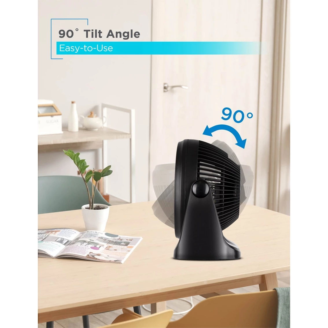Mini but powerful, this table, desk or counter fan is just the right size to cool and circulate the air in your bedroom or office. It tilts up to 90 degrees to control airflow, and has an extra long power cord (5 ft.). Lightweight at only 3 lb., it’s ultra portable so you can move it in a breeze. Quiet and practical, it’s the perfect fan for personal cooling.