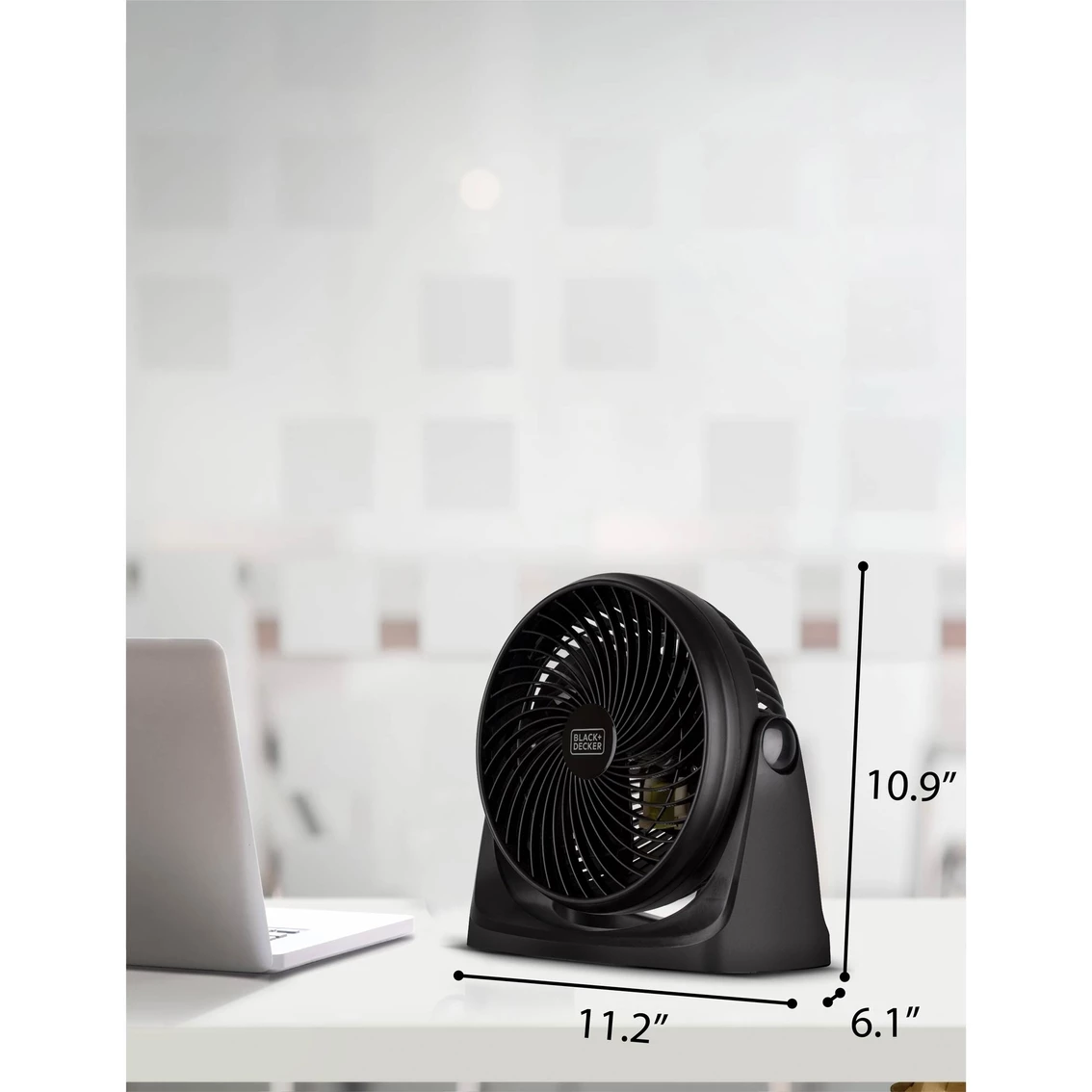 BLACK+DECKER Turbo Desk Fan – Electric Portable 7 Inch Table Fan with Adjustable Tilt for Quiet Cooling, Black. Model: BFTU107.