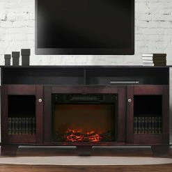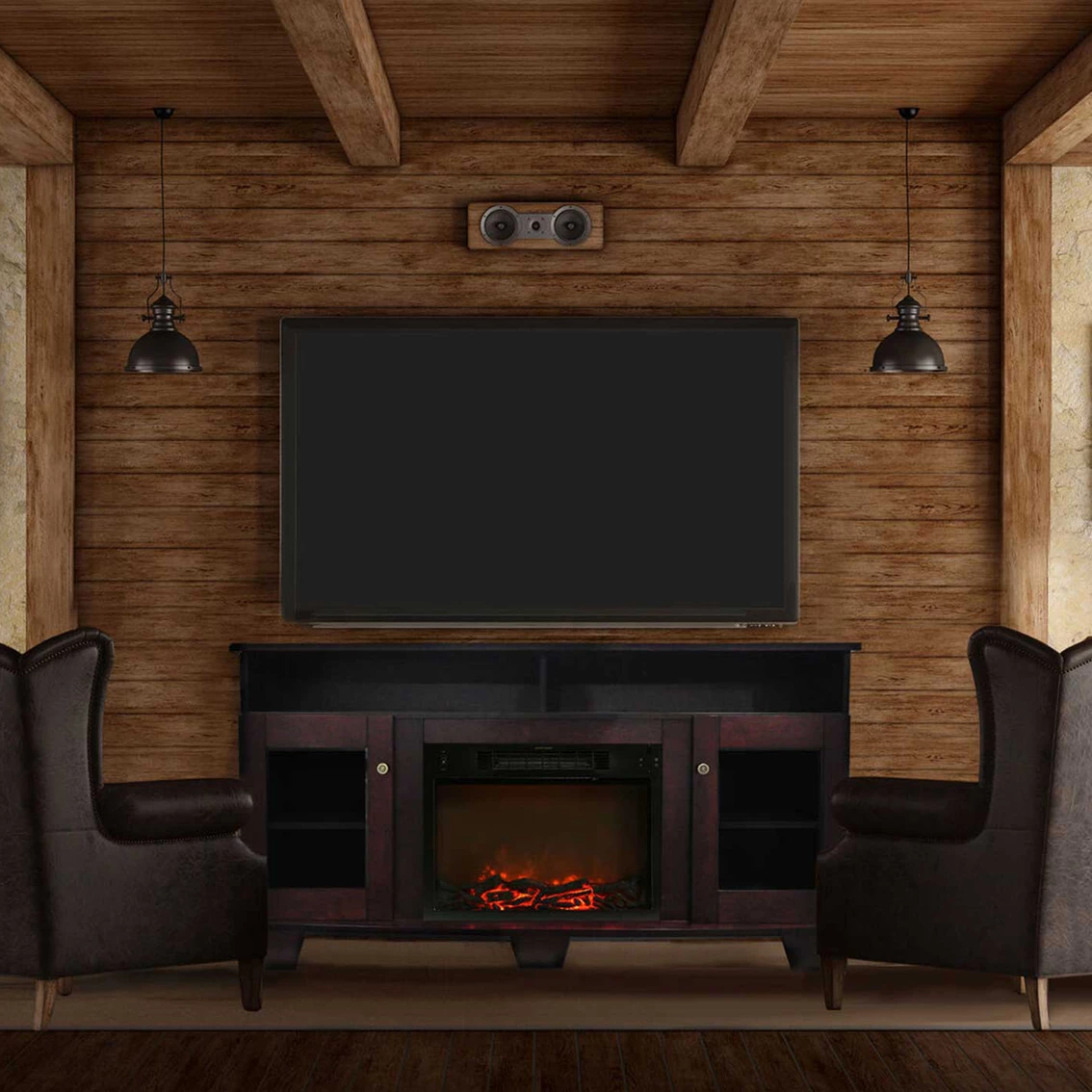 - 59 in. media stand in mahogany with a built-in electric fireplace