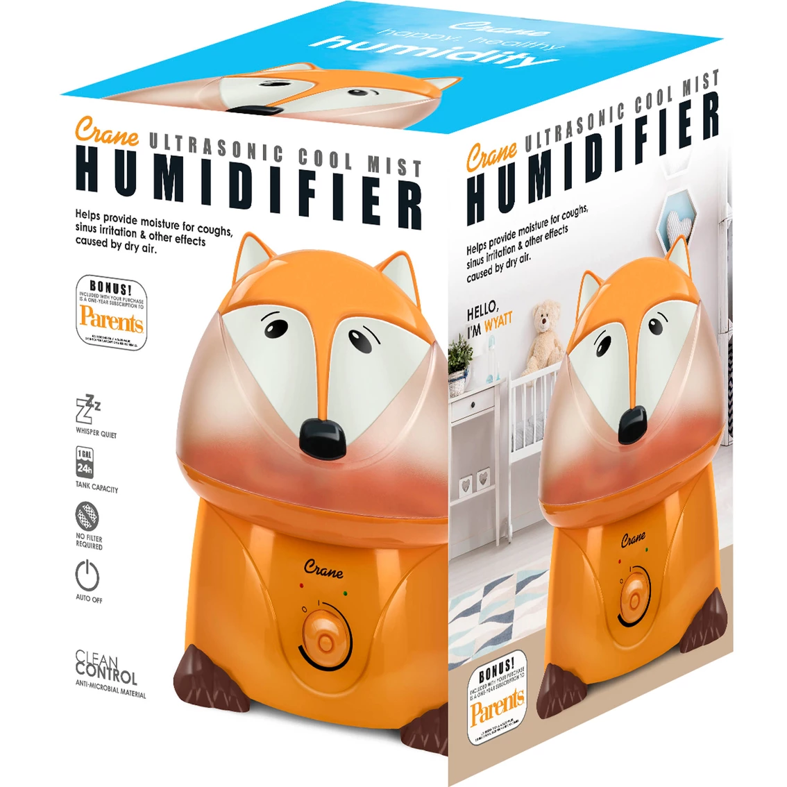 Get relief from cold and flu symptoms and bring wellness to your entire family with a Crane USA Adorable humidifier. It features an award-winning, child-friendly animal design and top rated performance. Crane’s 1 gal. This ultrasonic cool mist humidifier provides up to 500 sq. ft. of coverage and 24 hours of soothing moisture to help relieve the effects of dryness and congestion, helping you and your family to breathe easy and sleep through the night peacefully. Model: EE-8255.