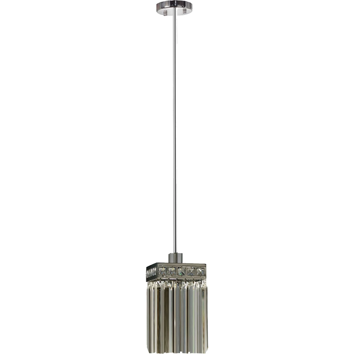 Dale Tiffany’s stunning Bradford Crystal Mini Pendant is a contemporary classic that will accentuate any decor in your home well into the 21st Century and beyond. The lovely square shade begins with a metal framework at the top that is finished in glistening polished chrome. A row of 5 faceted crystal jewels runs along the top of each of the 4 sides. Just below, hangs a row of 6 elongated crystal spikes that wrap around the light fixture within to create the body of the shade. Each spike hangs freely to create movement and a shower of sparkles from the 60W bulb (bulb not included) when the pendant is illuminated.