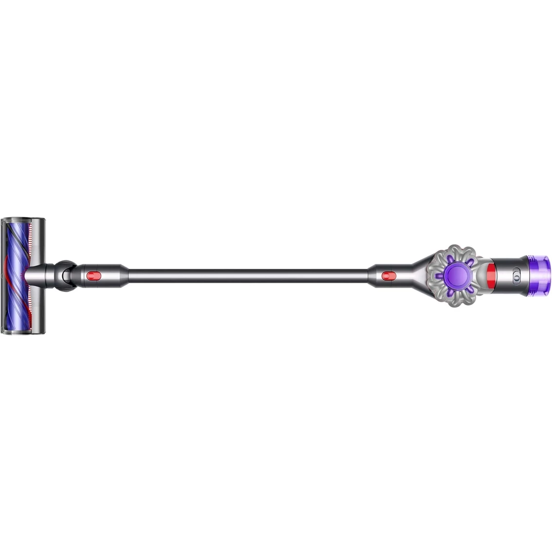 – The Dyson V8 has advanced, whole-machine filtration that captures pet allergens and fine dust, expelling cleaner air