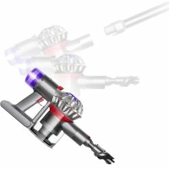 The Dyson V8 cordless vacuum cleaner is engineered with the power, versatility, tools and run time to clean homes with pets. Dyson’s de-tangling Motorbar cleaner head deep cleans carpets and hard floors with hair removal vanes that clear long hair and pet hair from the brush bar.