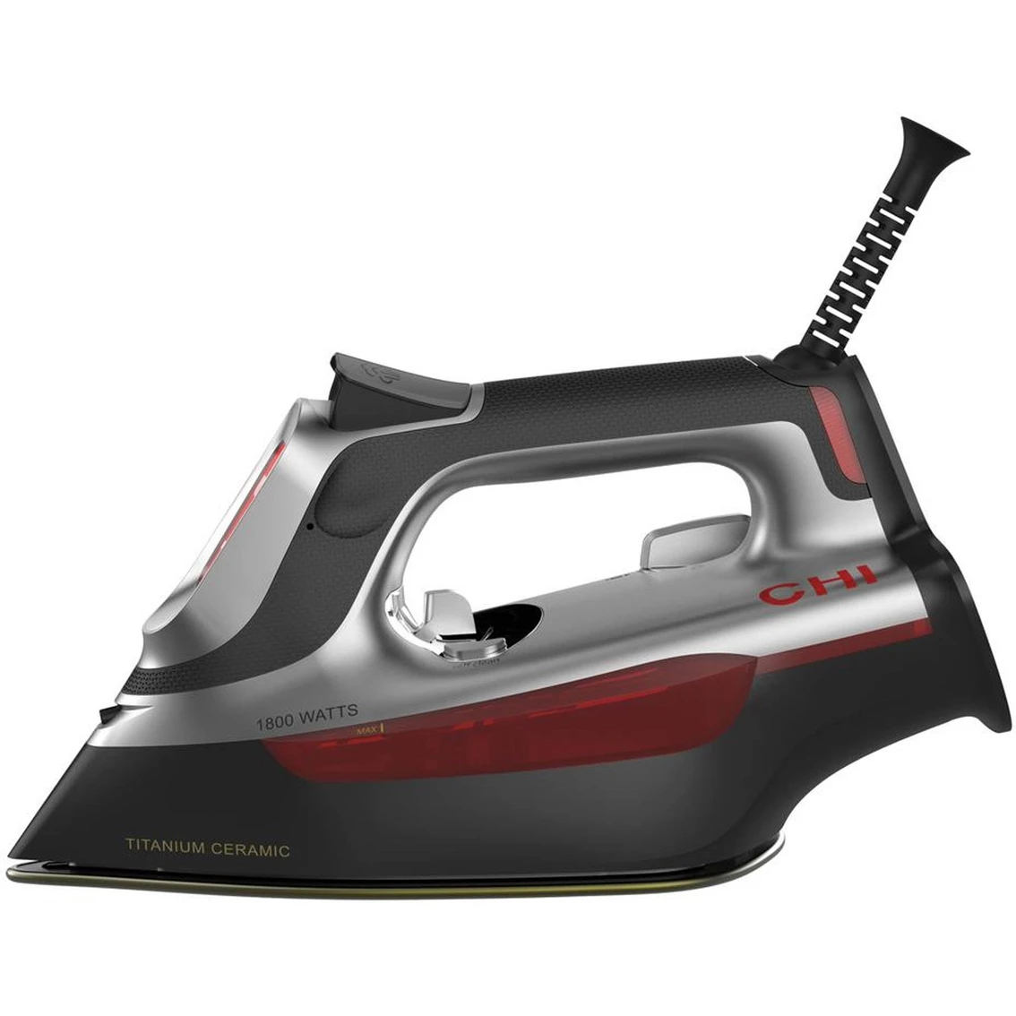 This clothing iron from Chi features a touchscreen with selections for ironing by fabric, temperature or care tag with heat status indicator. With CHI Flat Iron Technology, the titanium-infused ceramic soleplate is designed with over 400 steam holes for superior performance. The comfort grip and 10 ft. cord make it easy to use. Style: 13103.