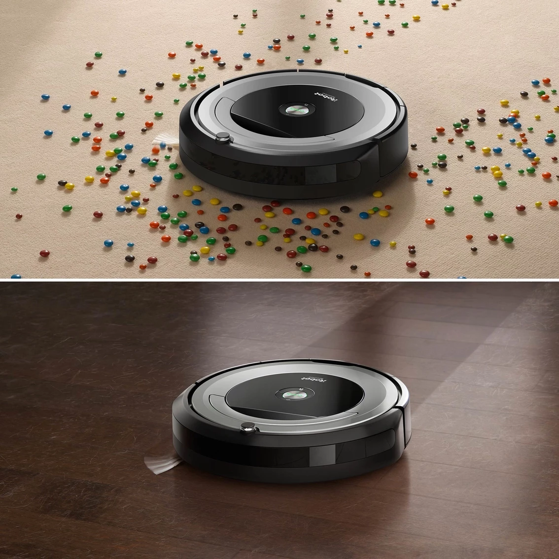 Connect to clean from anywhere with the Roomba 690 robot vacuum. The patented 3-Stage Cleaning System is specially engineered to loosen, lift and suction everything from small particles to large debris from carpets and hard floors. Dirt Detect sensors alert the Roomba robot vacuum to clean more thoroughly on concentrated areas of dirt. Just press Clean or schedule Roomba on the go with the iRobot HOME App.