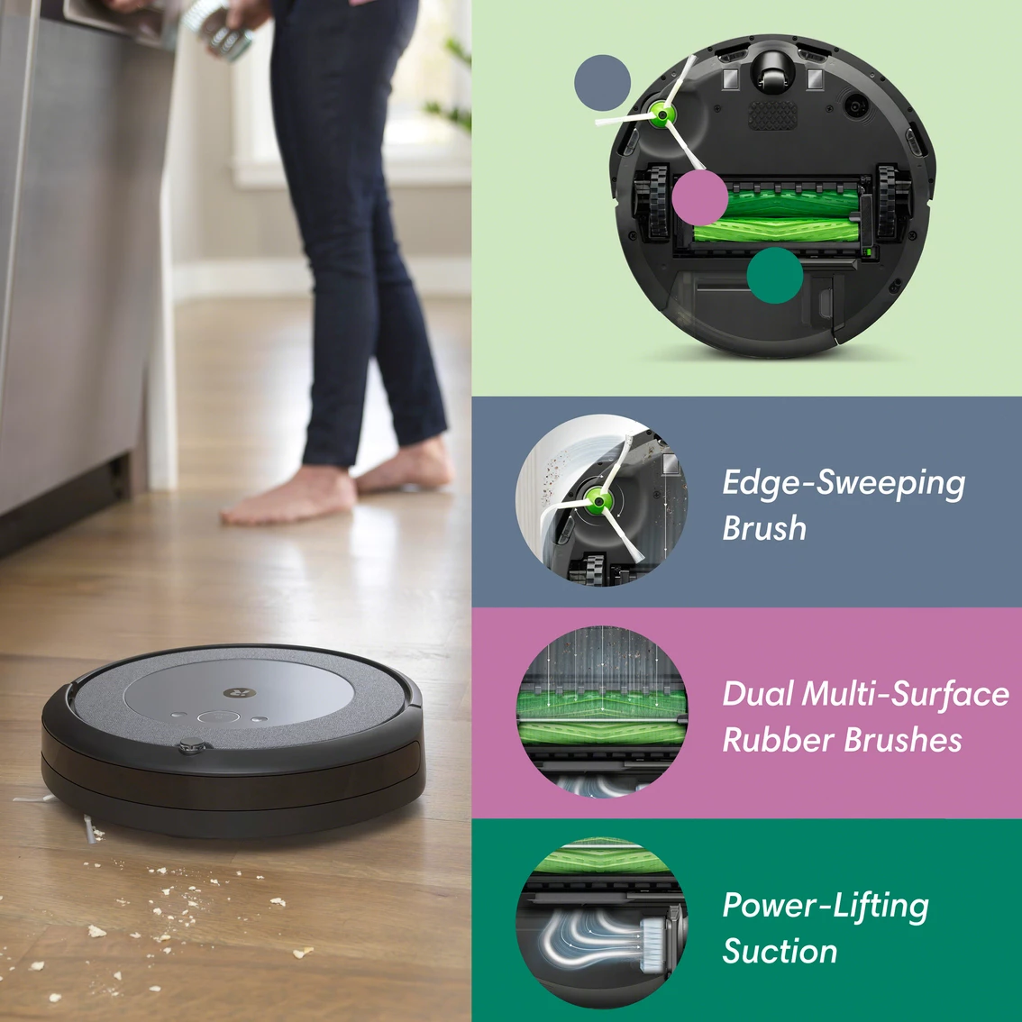 Get cleaner floors with less effort. The Roomba i3 WiFi Robot Vacuum offers 10X the Power-Lifting Suction to pull in dirt, dust and pollen. When allergy season hits or peak pet shedding season comes around, it offers extra cleaning sessions to keep your floors looking their best. It even learns your cleaning habits and suggests cleaning times that work around your schedule. Reactive Sensor Technology helps it avoid getting stuck, while Dirt Detect Technology focuses cleaning where it’s needed most. When you’re ready to clean, use the iRobot Home App or just say the word — Google Assistant and Alexa can tell your robot to clean with just the sound of your voice. Navigating purposefully and logically in neat rows, it powerfully vacuums your floors using Dual Multi-Surface Rubber Brushes, taking vacuuming off your mind, and your to-do list. Ideal for homes with pets. Compatible with a Clean Base Automatic Dirt Disposal (sold separately), so your i3 Robot Vacuum can empty its own bin. Model: I315020.