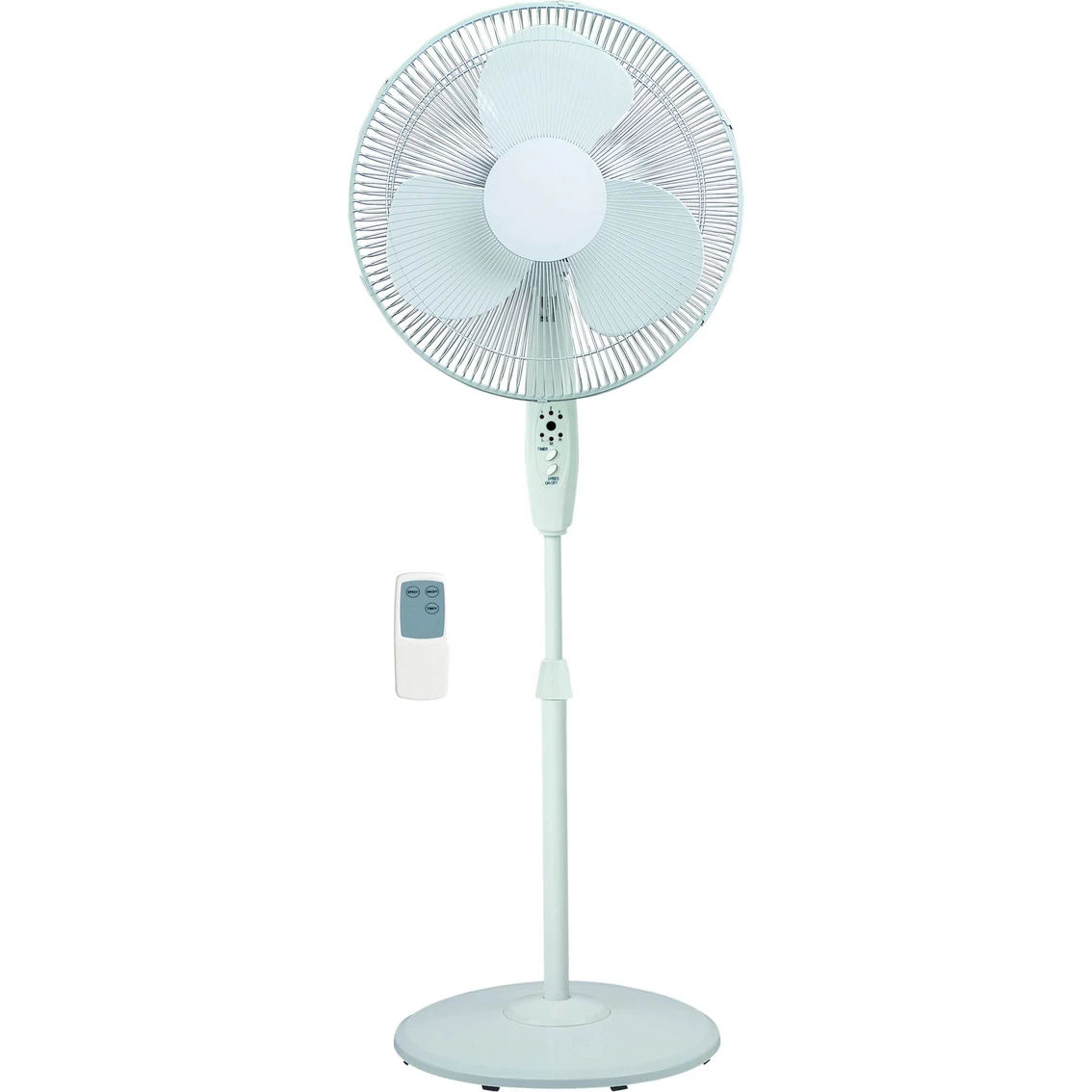 Beat the heat with the cooling power and convenience of this 16-in. standing pedestal fan from Pelonis. Features a multi-function remote, three energy-efficient speeds, 4-hour. timer, optional oscillation for broad room coverage and height and tilt adjustable. For home use only. Model: FS40-16JR.