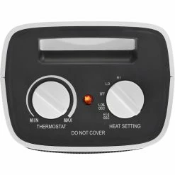 The Pelonis Personal Ceramic Heater features high and low heat settings, as well as a fan-only setting four all seasons use. It has two heat settings 900/1500Watts, adjustable thermostat for comfort control, oscillating function for heat distribution, safety over heat and tip-over protection, and built-in cool touch carry handle for easy moving.