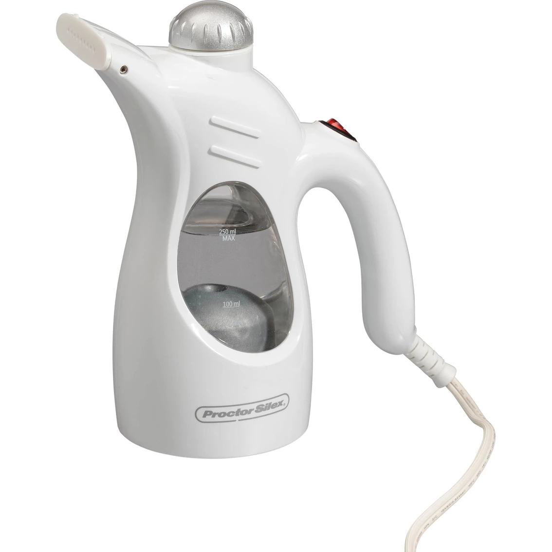 Travels wherever steam is needed. The Proctor Silex Handheld Garment Steamer was made for both use at home and on-the-go, so you can look your best, no matter where your travels take you. The lightweight design clocks in at only one pound, so it’s easy to take on the road. The steamer is perfect when traveling internationally. For connection to a 240-volt supply, you’ll just need a suitable attachment plug adapter for the power supply receptacle. Features a power switch/light. Multi-voltage 120/240V for international use. Remove cap for easy filling. Model: 11579.