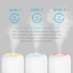 All these functions are controlled by an easy-to-use touch button control panel. For your safety, Hume Sense will automatically shut off if it detects a low water level or if the tank is removed. Added optional settings, like the Color Choice Technology night light and the aromatherapy tray, add a soothing glow in the color of your choice and provide a natural deodorizer in the form of your favorite 100% essential oils. Bask in the benefit that only a top-notch humidifier provides to a home, office, or nursery. With a consistently regulated climate, help fight dry skin, sleep better and gain relief from cold-like symptoms and sinus issues year-round with HUME Sense. Model: PEHUTRB-W.