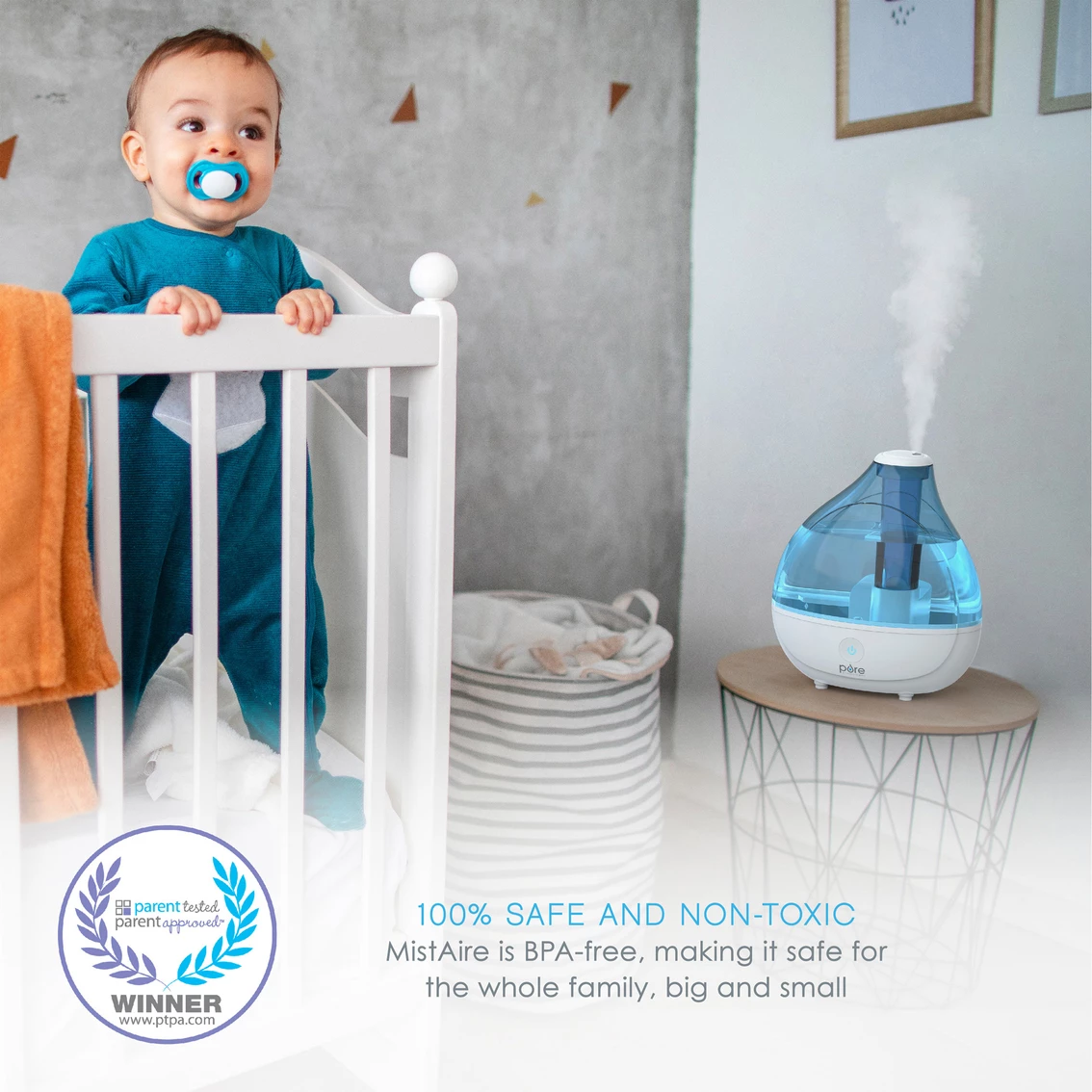 Moisturize the dry air in your home or office in minutes with the MistAire Ultrasonic Cool Mist Humidifier from Pure Enrichment. This powerful and aesthetically pleasing tabletop ultrasonic humidifier is packed with smart features that make it the perfect solution for improving the air quality in medium-sized rooms. With an ample 1.5-liter tank, feel moisturizing relief for up to 25 hours of continuous and safe operation. The MistAire Ultrasonic Cool Mist Humidifier is backed by Pure Enrichmentβs industry-leading 5 Year Warranty so your satisfaction is guaranteed. Model: PEHUMIDIF.