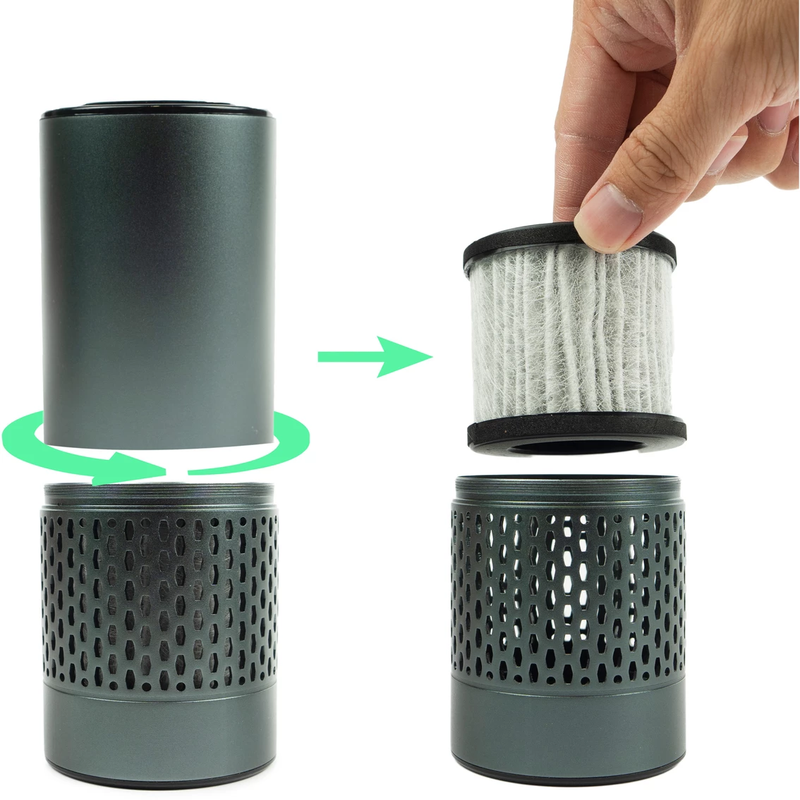 Wagan USB Air Purifier. Filter contaminated air and kill harmful viruses and bacteria with the USB Air Purifier. Reduces allergens and odors. Powered by USB, you can take it wherever you go! H13 HEPA Filter: Filters out 99.95% of contaminants and PM2.1 particles. Air Ionizer. Helps reduce pollution, allergens, dust, and pollen particles. UV-C Light Disinfecting light: kills bacteria. USB Charging cable. Dimensions: 2.6 x 2.6 x 6.5 in. Model: